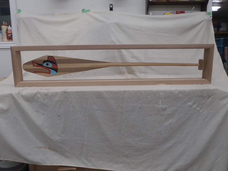 A local carver from the Snuneymuxw First Nation in Nanaimo approached me to create a complementary frame for the paddles he carved. After our discussion, it was decided that clear cedar would accent his work in the best way. One of the paddles is destined for his home and the other will hang on the wall of a new bank in Nanaimo.