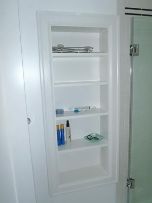 This shelf below was designed to match the interior finish of a beautiful heritage home using solid maple. All the finished edges match to the old style details that exist in this house. Four photos.