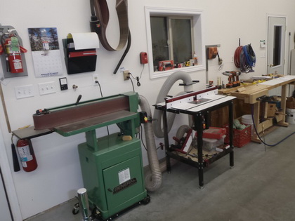 The latest tools purchased are 1) a thickness sander that has a 25" width capacity and can sand thicknesses down to 1/8"; 2) an edge sander – 6" x 90" capacity that allows much faster finishing to exact sizing; 3) a tabletop spindle sander which allows sanding of interior surfaces and curves in a accurate and efficient manner. 4) A Milwaukee 1 HP router mounted in a custom Jessem Router table. The accuracy one can achieve with this tool for edging and mouldings is beyond compare.